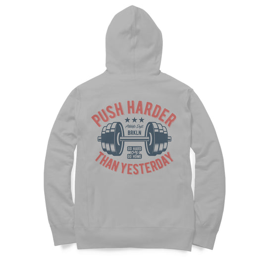 'Push Harder than Yesterday' - Barbell - Motivational (Back Printed) Hoodie