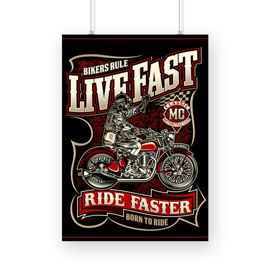 Live Fast Ride Faster - Vintage Motorcycle Poster