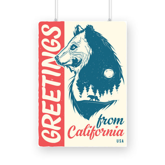 Greetings from California - Grizzly Bear Spirit Retro Poster